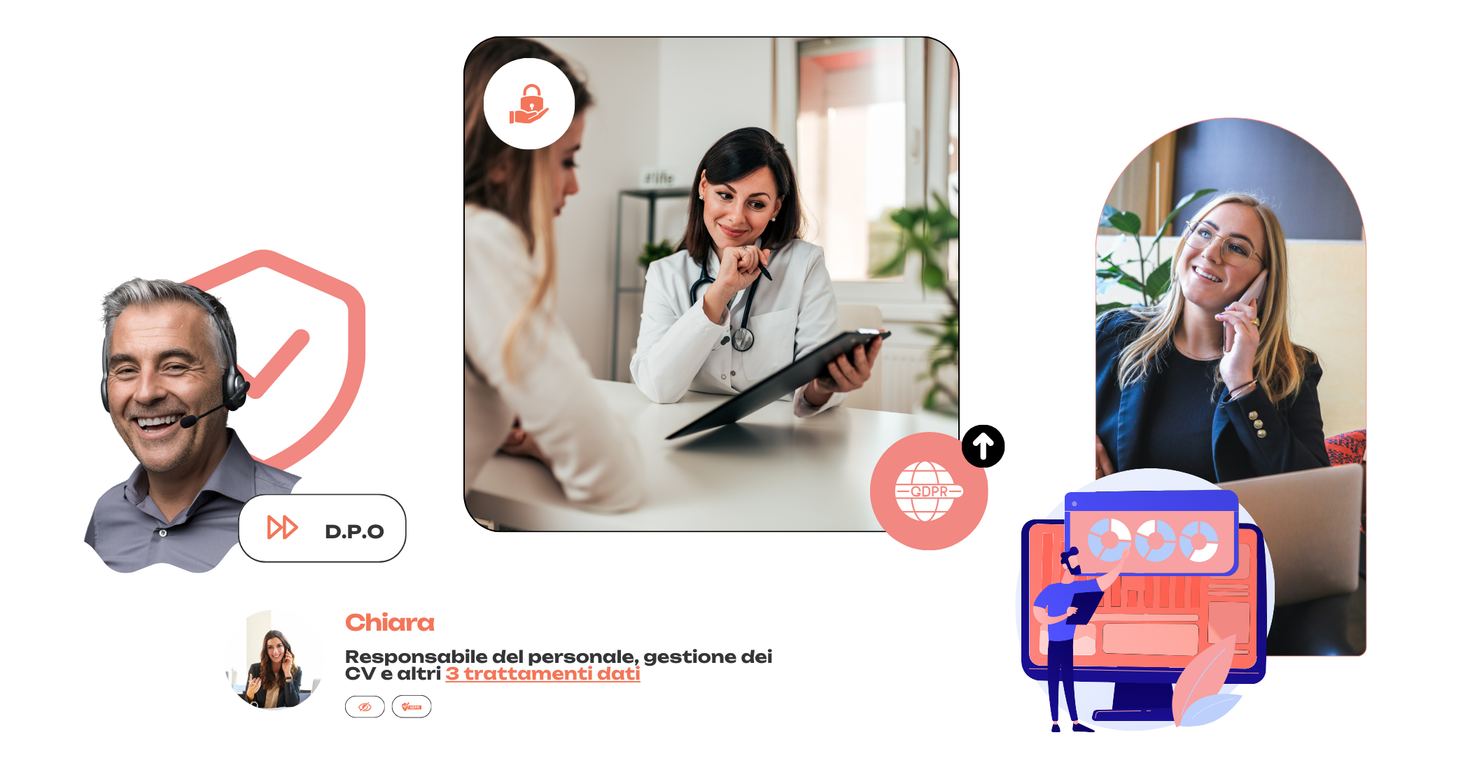 Consulenti legati ed esperti in privacy e trattamento dati sempre disponibili per il tuo supporto completo.